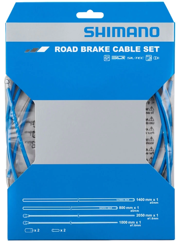 Jeu de câbles de frein pour vélo de course Shimano pour freins avant et arrière avec câbles intérieurs revêtus SIL-TEC pour une performance de freinage durable et souple.